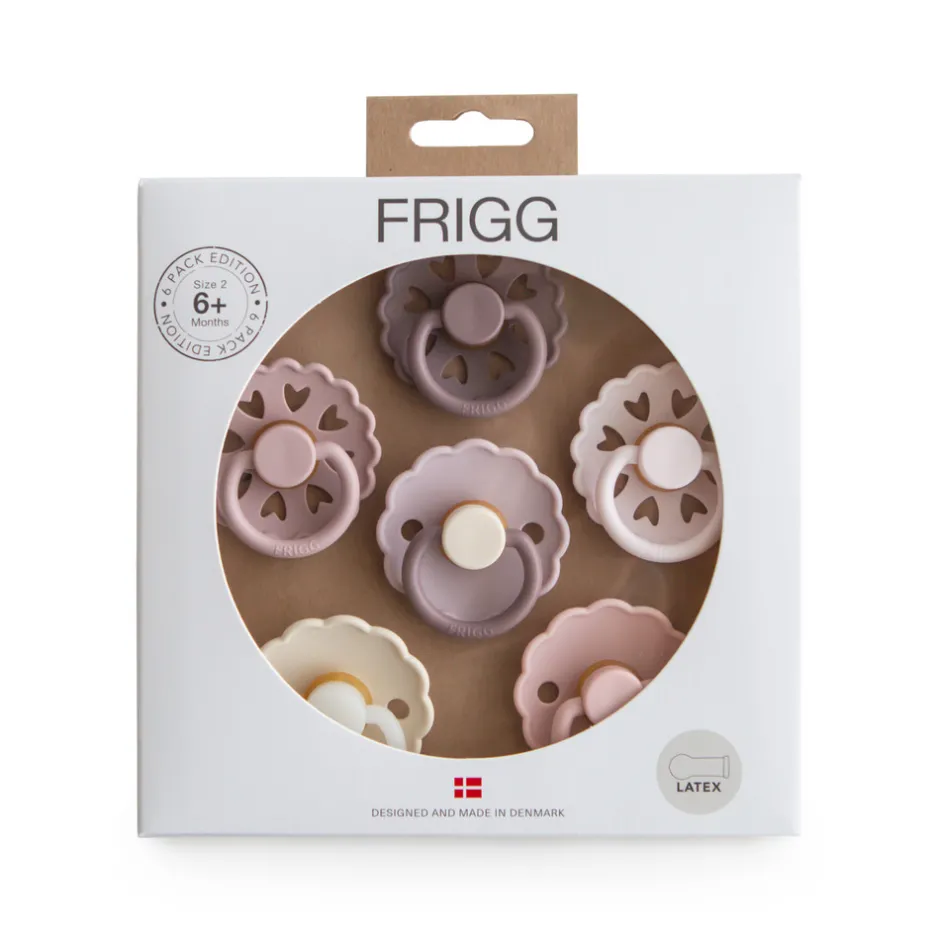 FRIGGs suttepakke ‘Blooming Love’ indeholder 6 forskellige sutter med en rund nippleform i latex str. 2. ‘Blooming Love’ er en pakke med sutter i smukke blomsternuancer. ‘Blooming Love’ er inspireret af naturens og kærlighedens farvepalet.