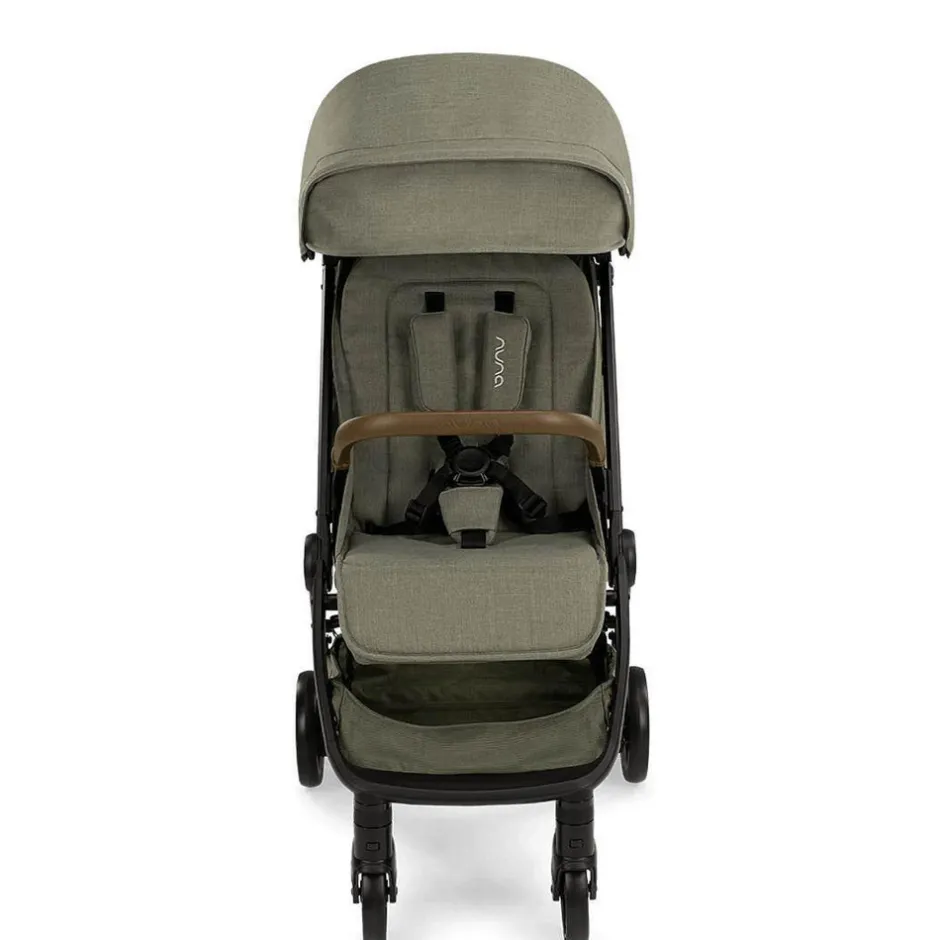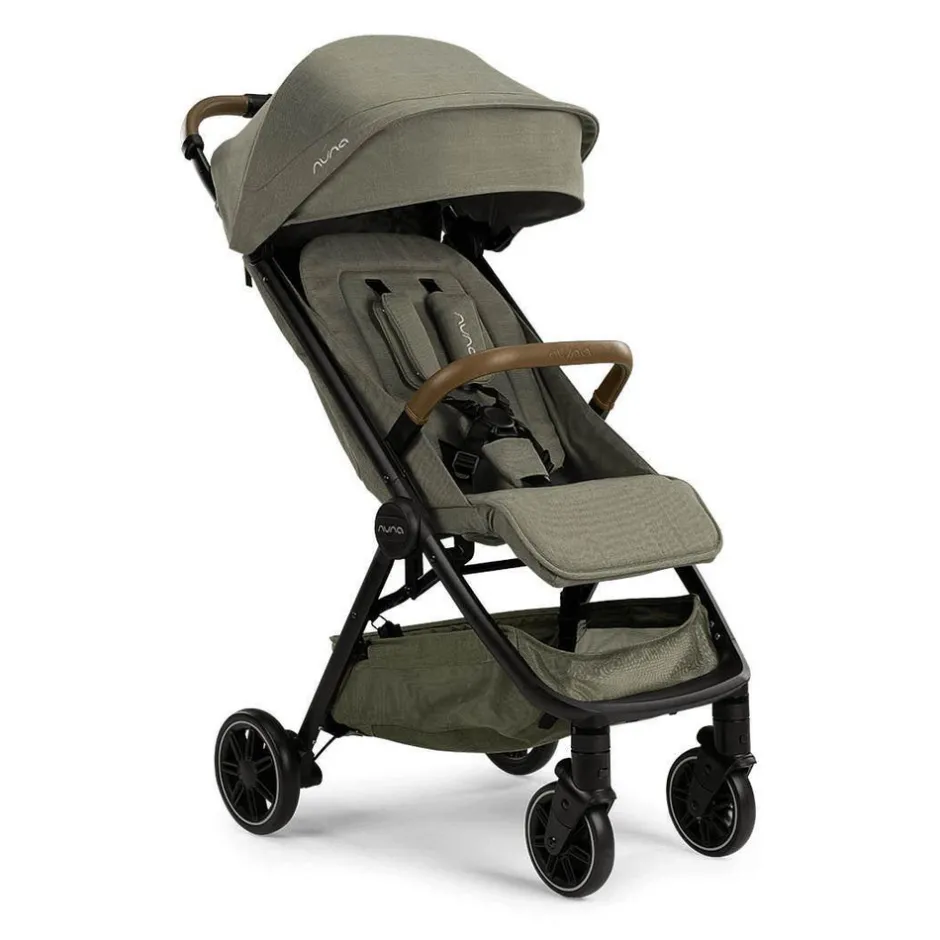 Luksus funktioner til by og rejser møder letvægts bekvemmelighed i denne fuldt udstyret og lækker designet klapvogn – TRVL fra Nuna. Sædet er trods det smalle udsende rummeligt, og med god plads til barnet. En integreret 5-punktsele sørger for barnet er spændt sikkert fast, og med MagneTech Secure Snap™ er det nemt at anvende selen da det er et magnetisk spænde der automatisk låses på plads. Ryggen kan justeres i trinløse position via snoretræk bagpå, og med fodstøtten der kan indstilles, er det nemt at finde en behagelig side-hvile-sove position til barnet. Kalechen har en ekstra solskygge som “vippes” frem for at give mere skygge til barnet, og med et peek-a-boo vindue kan man nemt holde kontakten til barnet. Sædet er i højere position end andre klapvogne, hvilket er en fordel hvis man f.eks. er på cafe/restaurant besøg, så kan barnet blot blive siddende i klapvognen, plus du får lettere tilgang til varekurven. Forhjulene på TRVL er drejbare, men kan låses hvis der er behov for det evt. på det lidt mere ujævne underlag. Når TRVL skal foldes sammen er det så nemt som at blinke med øjnene – blot med et tryk og lille skub på knappen ved styret så er den foldet sammen. Udover det er meget nemt at folde den så fylder den også ganske lidt, og er derfor nem at have med i bil, på rejsen, eller bare til opbevaring i hjemmet.