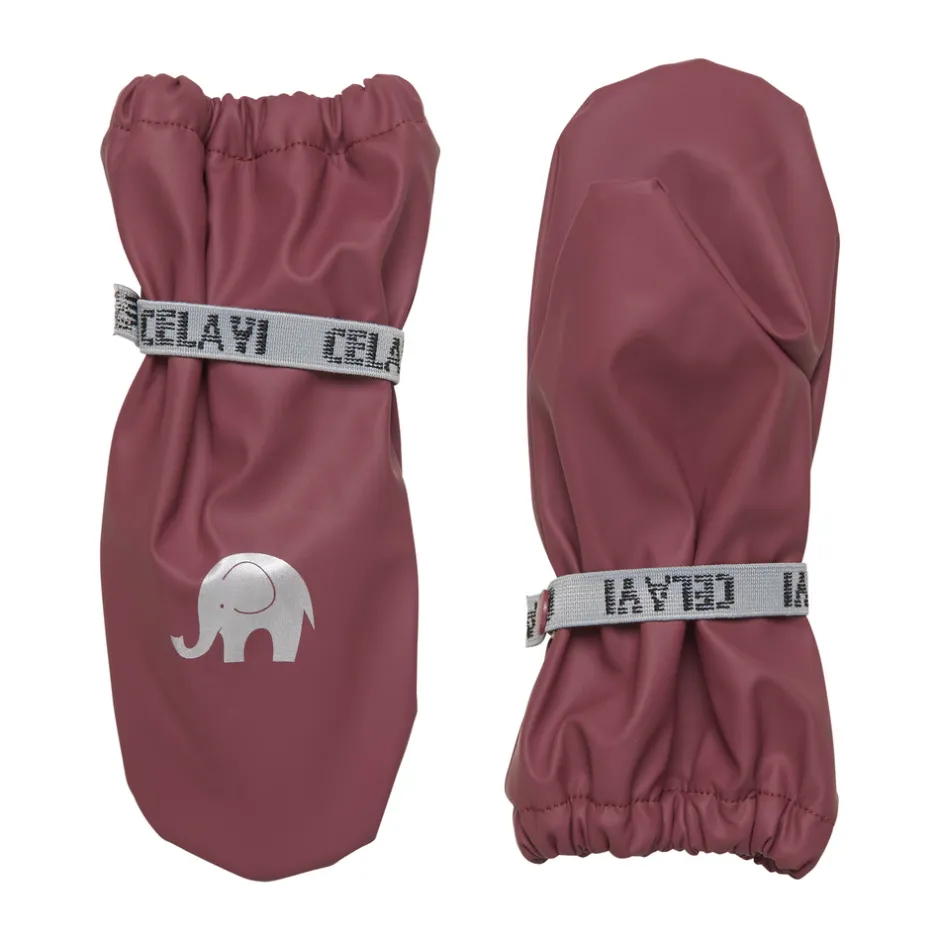 Praktiske og lune PU vanter. Vanterne har elastikbånd i håndleddet, der lukkes med en trykknap, og holder helt tæt. Refleks i CeLaVi elefant logo. Gode til de små, når der leges i vådt sand, da de er vandafvisende. Nem at rengøre med en våd klud. Foret med fleece, som er dejlig varmt og blødt for fingrene. Materiale: 68% Polyester/ 32% Polyerethan