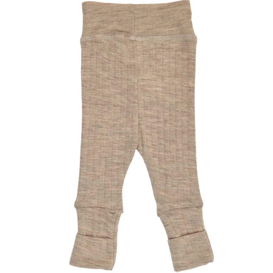 Dejlig bløde bukser til de mindste. Bukserne har en bred og elastisk kant foroven som kan foldes efter behov og stil. I ben-afslutningen er der foldbare fødder, så du kan folde bukserne så de små fødder ikke bliver kolde. Bukserne er lavet fra str. 44-74 så de passer meget små børn. Fremstillet i dejlig blød merinould-rib som ikke kradser. Uld er varmeregulerende og har den evne at den holder tør og varm da uld transporterer sved væk fra kroppen. Produktet er Naturetexx® Plasma- og GOTS Organic-certificeret, hvilket betyder: – Ingen skadelige kemikalier – Ingen superwash – Ingen mulesing eller sheep dip – Ingen grusom dyretransport Vaskevejledning: Uld skal ikke vaskes så ofte som andet tøj, da det er et selvrensende materiale, der sjældent kommer til at lugte. Men når der nu er tale om børnetøj er vask alligevel uundgåeligt. Alle vores uld-produkter kan vaskes ved 30 grader på uld-program og med lav centrifugering. Benyt et vaskemiddel beregnet til uld, da almindeligt vaskemiddel indeholder enzymer som nedbryder ulden og dens kvaliteter. Kan stryges eller dampes ved lav temperatur. (GOTS Organic Certified by Ecocert Greenlife Lic. No. 152033). Produktet er GOTS organic- certificeret, hvilket betyder at bomulden er certificeret økologisk, og at der i alle andre processer som farvning, strikning og syning er taget de strengeste hensyn til miljøet. GOTS er internationalt anerkendt som den førende standard for forarbejdning af tekstiler af økologisk bomuld. Derudover tages der også hensyn til arbejdsforholdene, hos dem der producerer tøjet. Økologisk uld 100%