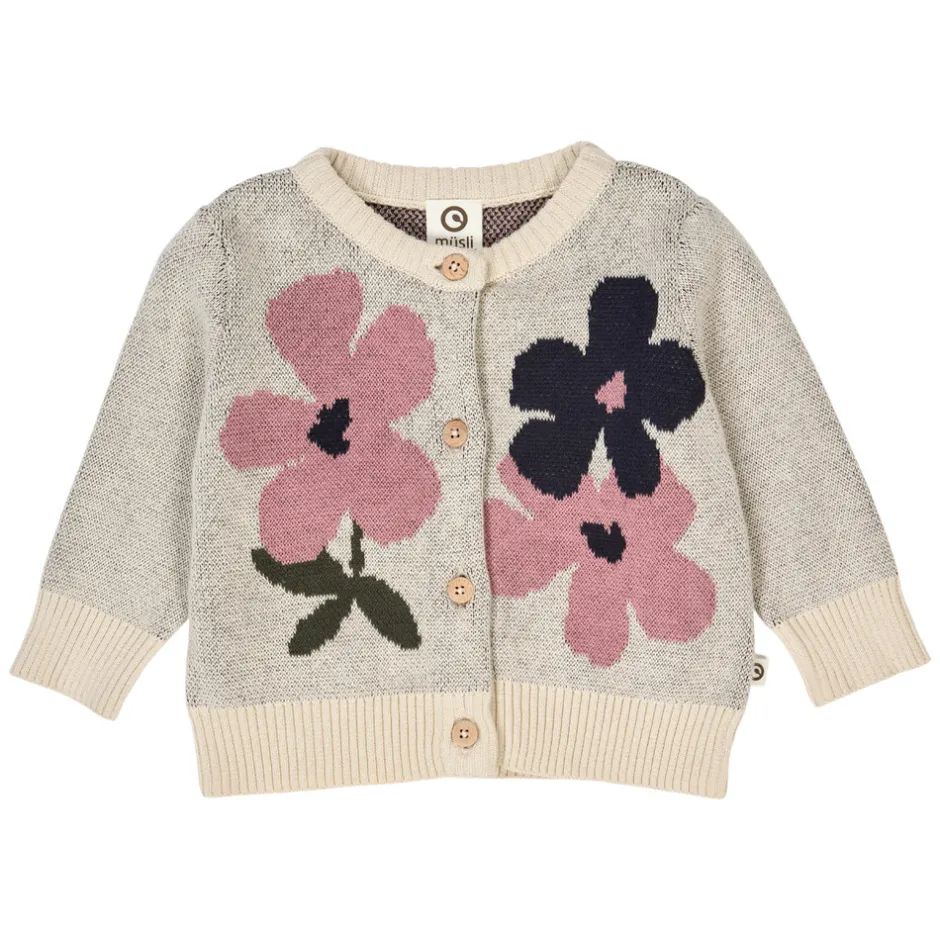 Cardiganen er strikket i 100% blød, økologisk bomuld og er GOTS-certificeret. Det betyder, at bomulden er dyrket uden skadelige kemikalier, og at hele produktionsprocessen – fra farvning og strikning til syning – lever op til de strengeste miljøstandarder. GOTS-certificeringen sikrer desuden gode og ansvarlige arbejdsforhold for dem, der fremstiller tøjet.